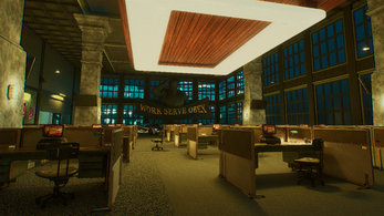 When you arrive, the office is buzzing under the hum of harsh overheads. But as you move through the tables collecting empty cans and leftover pizza boxes, the atmosphere shifts. One by one, the lights begin to fail, leaving nothing but the cold, pale moonlight cutting through the high-rise windows.